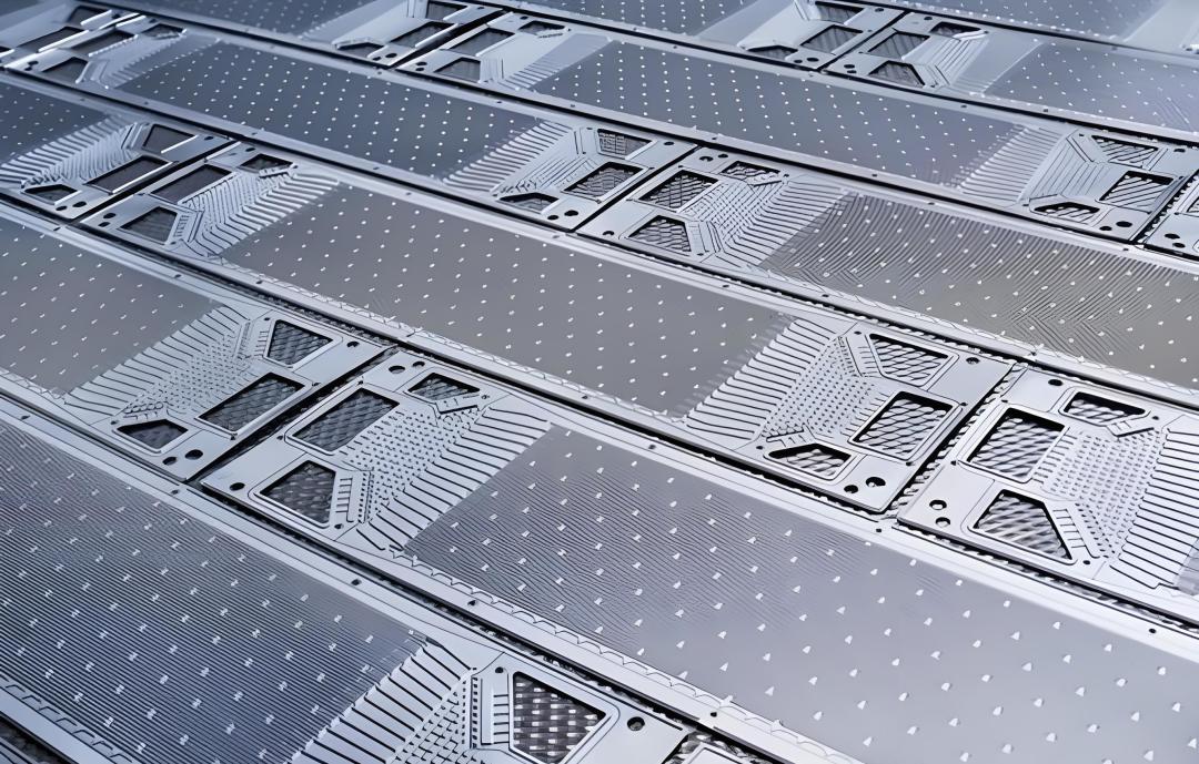 双极板主要由阳极、阴极和中间的质子导电膜组成,可采用涂层金属、石墨和石墨-聚合物复合材料等不同材料制造。金属双极板在重量、体积和低温启动能力方面具有优势,同时提供了相对经济高效的批量生产潜力。双极板的制造通常采用0.1-0.2mm厚的不锈钢合金薄片,材料从卷材展开后,经过机械或液压成型、切割分离、涂层和极板连接等步骤。