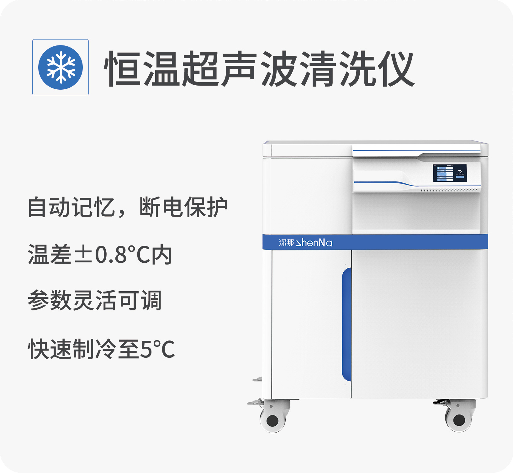 超声波清洗仪通过超声波在清洗液体中的空化效应,可加速溶解并剥离被清洗器皿内孔、盲孔中的灰尘、油脂等污垢。深那超声波清洗仪采用自研关键器件,具备低温恒温、静音、清洗速度快、效果佳、不损伤表面、有效减轻劳动强度等优点。
