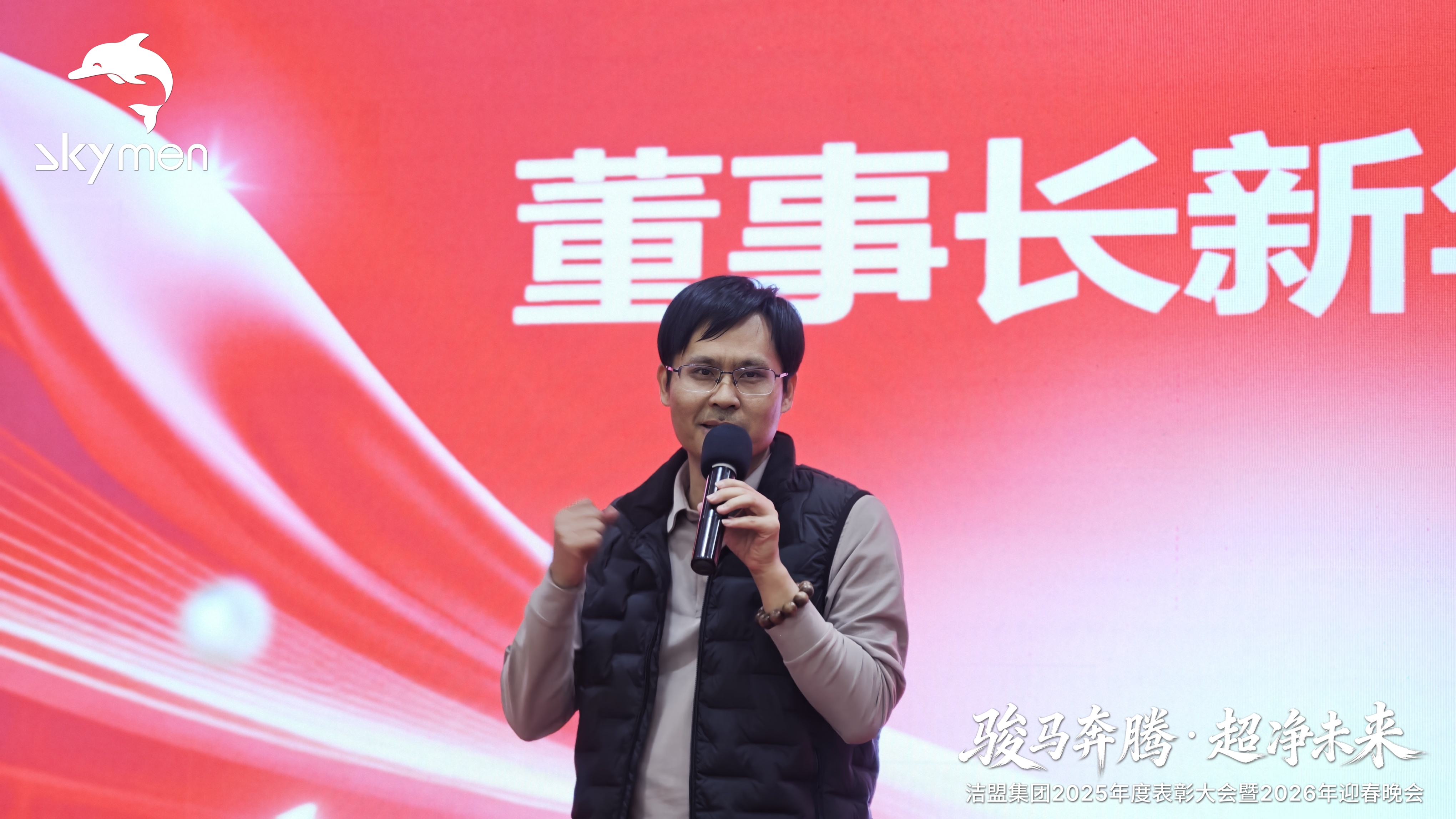 晚会伊始,洁盟集团董事长杨善发表致辞,字字恳切又掷地有声,细数2025年集团在技术创新、市场拓展、团队建设上的丰硕成果,表示每一份成绩的取得,皆源于全体洁盟人始终以市场需求为导向、以团队拼搏为驱动的笃定践行;也擘画了2026年“超净未来”的发展蓝图,明确以客户需求为出发点持续开拓创新、以行业标杆为目标锤炼专业高效能力的前行方向。字里行间满是对全体员工一路同行的感谢,更饱含对新程共赴的殷切期许。